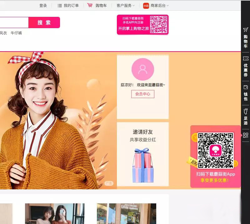 二維碼外置類:此類用于電商類網(wǎng)站較多,且與側(cè)邊欄同用,方便下載,再加上運營類文案的的吸引強,能夠很快抓住用戶的眼球,且無需點擊或鼠標移動,便可直接拿出手機掃碼。對于用戶的操作行為是最為精簡的。唯一需要注意的是,在二維碼周圍的空間盡量要保持留白,使得二維碼能直接被用戶所看見,如果在比較雜亂的網(wǎng)站上,那么加上二維碼,也很難被發(fā)現(xiàn),除非二維碼放的足夠的大,但空間利用率就會降低很多。