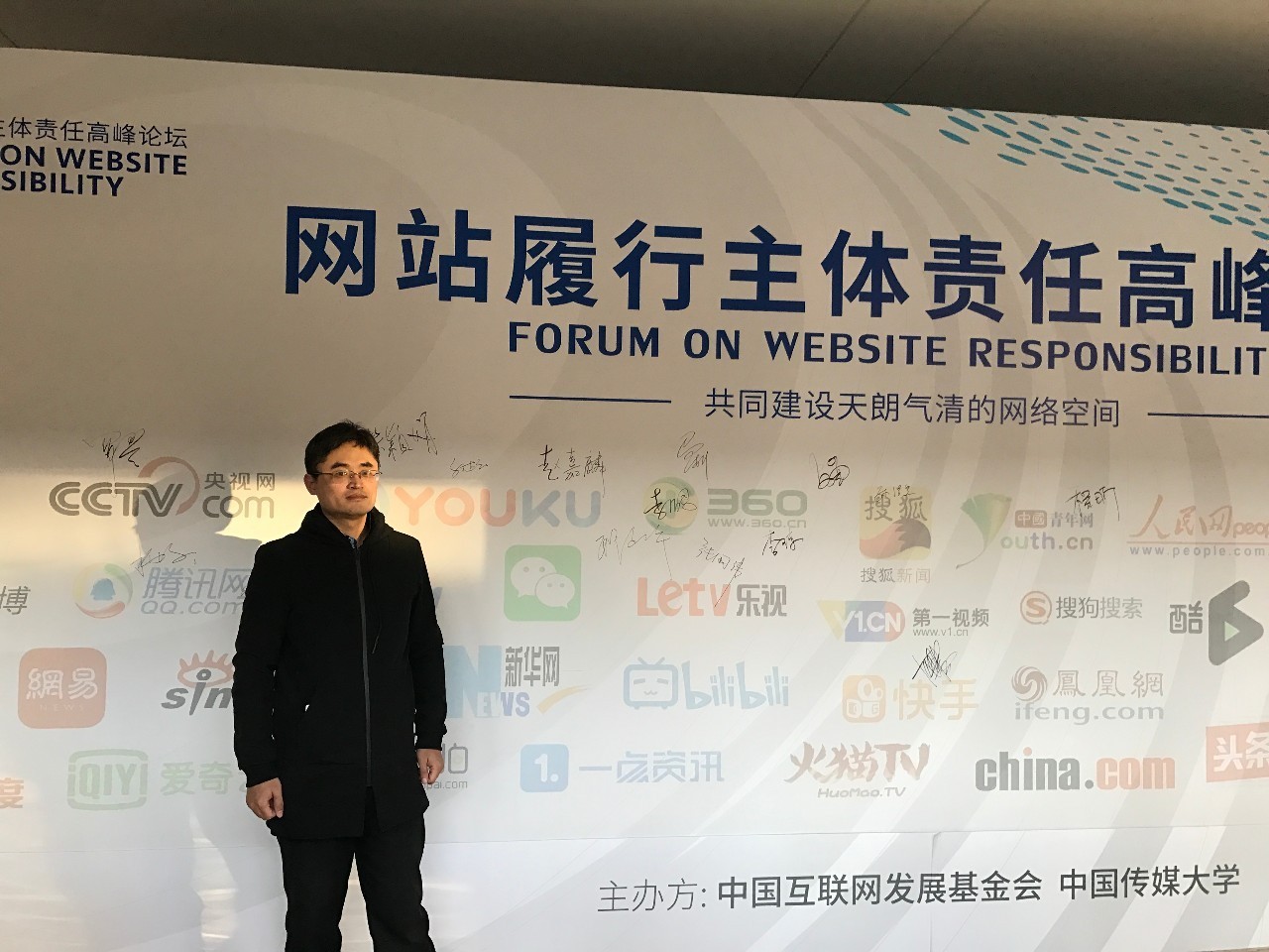 12月27日,由中國互聯網發展基金會和中國傳媒大學主辦的網站履行主體責任高峰論壇在京舉行。圖為中聯科技技術總監晉建杰簽字留念。