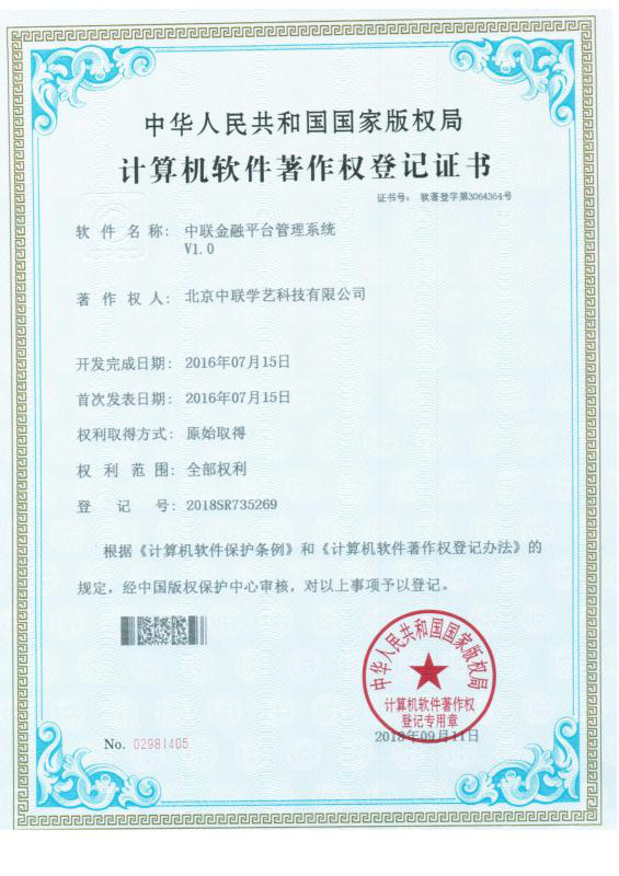 中聯(lián)金融平臺(tái)管理系統(tǒng)證書內(nèi)容: