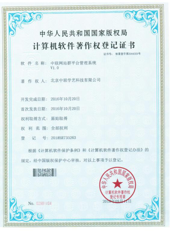 軟件名稱:中聯(lián)網(wǎng)站群平臺(tái)管理系統(tǒng)V1.0